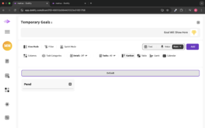 Temporary Goals Section: This part of the screen shows the Temporary Goals with a placeholder for a goal to be set.