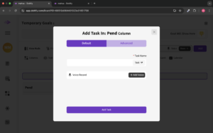 Task Addition Section: The section shows “Pend” with an Add button for adding tasks to this column