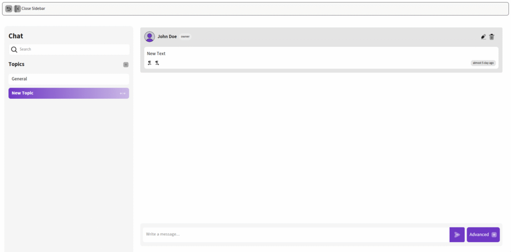 - Close Sidebar: Use the Close Sidebar button to collapse or reopen the discussion panel, keeping the interface clean and flexible.