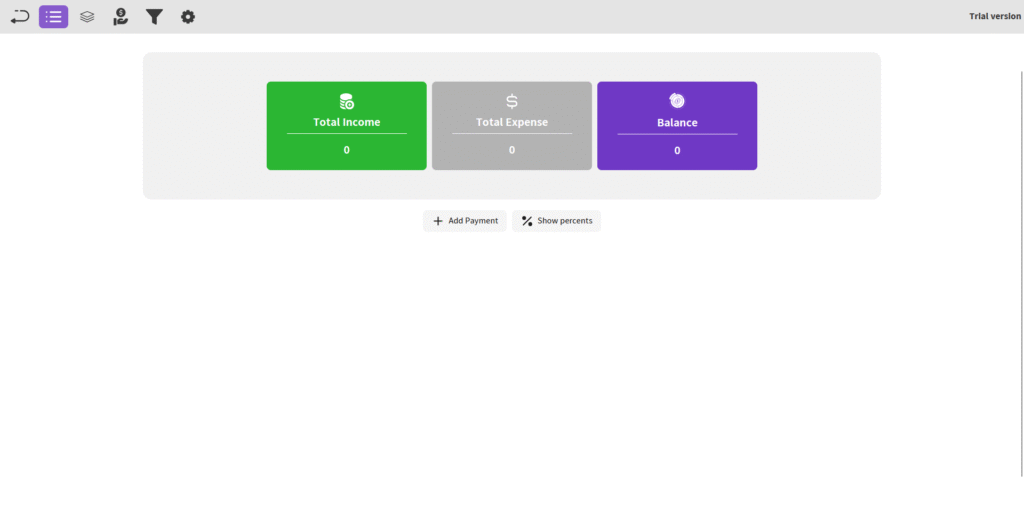 Manage your finances by entering Income and Expense entries, and view your Balance. To add, click Add Payment, input the details, add a Payment Description, and save. After adding, you can Edit, Delete, or view Details.